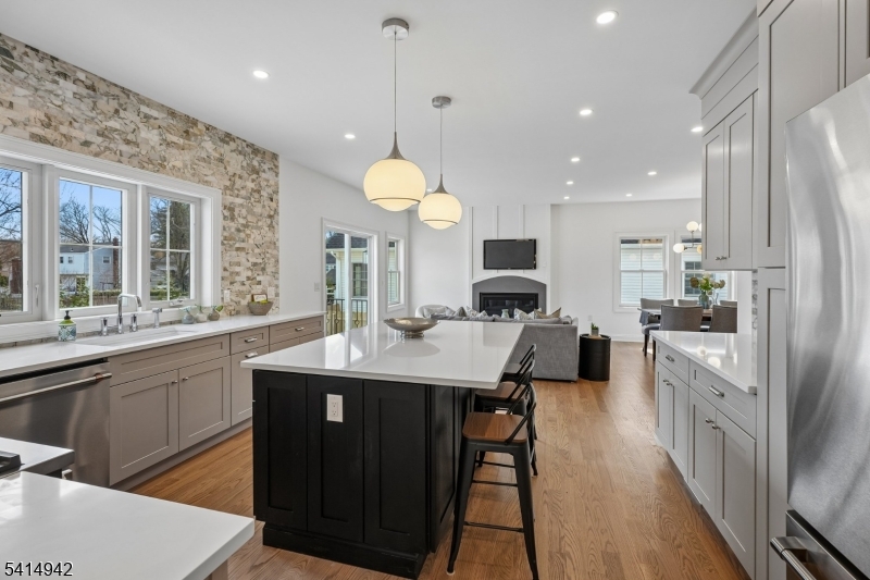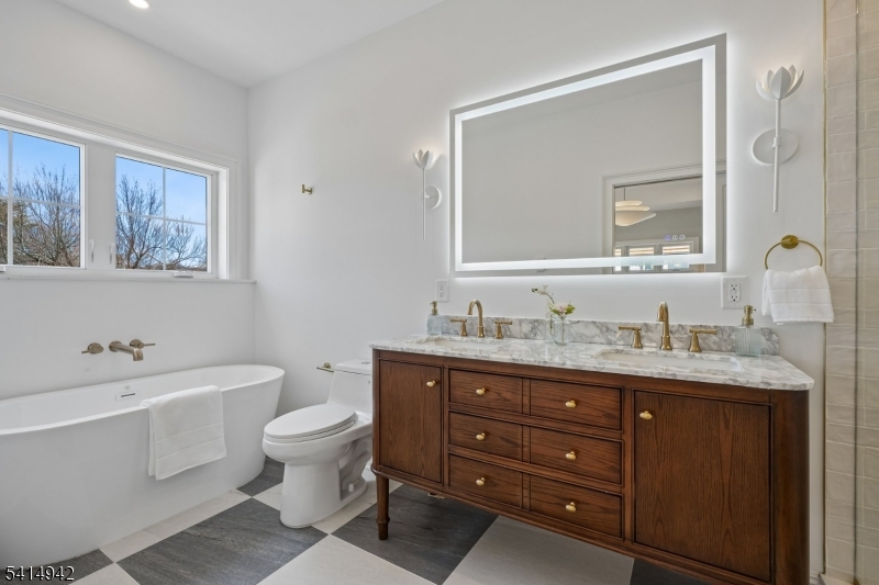 Stunning and spacious 5 bed, 4.5 bath new construction colonial thoughtfully designed and carefully constructed by Lefko Brothers. Step into a large foyer with views to the serene backyard. A private living room with custom wainscoting lends itself to easy conversation. Continue into an open dining space with easy access to the kitchen. A sunny, large family room with gas fireplace and sliders to the back patio will be your gathering spot year around. The gourmet chef’s eat-in kitchen includes Cafe appliances, 36″ Cafe range, quartz countertops, wood cabinets, stylish stone backsplash, under cabinet lighting, custom range hood and an over-sized island with seating. A convenient mud room leads to an oh-so-chic powder room with an oversized two-car garage just steps away. Walk up to four bedrooms, three full baths and convenient laundry room. The spa-like primary suite includes a large bath with double vanity, soaking tub and radiant heat. The luxurious bedroom, with tray ceiling and custom molding houses a generous walk-in closet. A second ensuite bedroom, and two additional bedrooms with jack and jill bath. Hardwood floors on 1st and 2nd levels, custom lighting throughout. The lower level with high ceilings includes a private office and bonus second family room with wet bar and wine fridge. A fifth bedroom and full bath provide privacy for overnight guests. The fully fenced, level backyard and custom patio are perfect for al fresco dining and outdoor play. Welcome home!