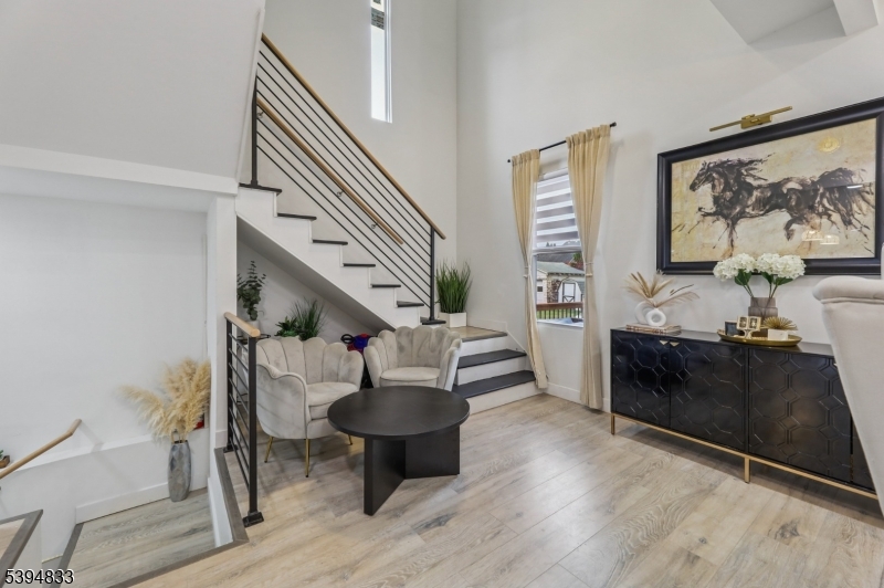 Step into a home where every detail exudes luxury and timeless style. Completely rebuilt and expanded, this 4-bedroom, 3-bath residence offers an exceptional blend of classic charm and modern sophistication. The bright open-concept layout features high ceilings, beautiful hardwood floors, and a stunning floating staircase with a double-height ceiling accented by a statement chandelier. The large gourmet kitchen showcases quartz countertops, premium stainless-steel appliances, a featured pantry with glass doors and lighted shelves and a stylish wet bar that opens seamlessly to the living and dining areas. The first floor also includes a bedroom and full bath. Upstairs, the primary suite offers vaulted ceilings, two walk-in closets, and a spa-inspired bathroom. Two additional bedrooms feature unique design touches, a private balcony, and also upstairs cozy office nook. From the dining room, glass sliding doors open to a spacious deck overlooking a private backyard. The home also includes a detached two-car garage and a full basement providing laundry and extra storage. Located in Little Falls, one of the best towns to live in, close to everything! Minutes to the NYC train or bus, top-rated schools, parks, and cafés. This home is a true turnkey gem ready to be enjoyed from day one!