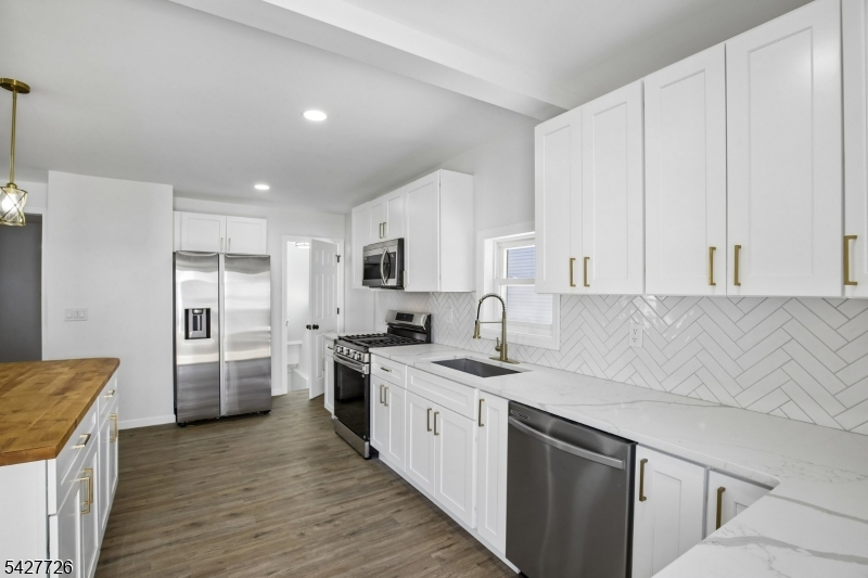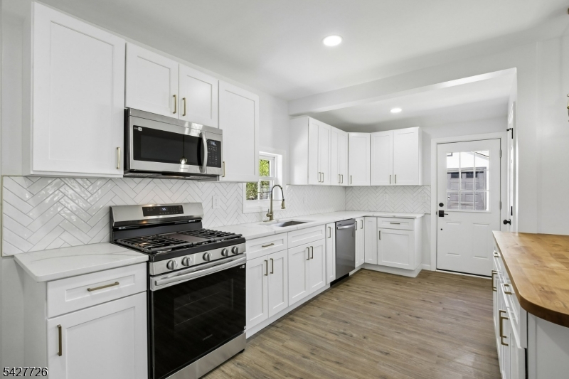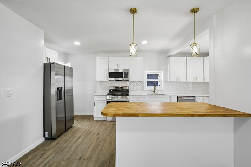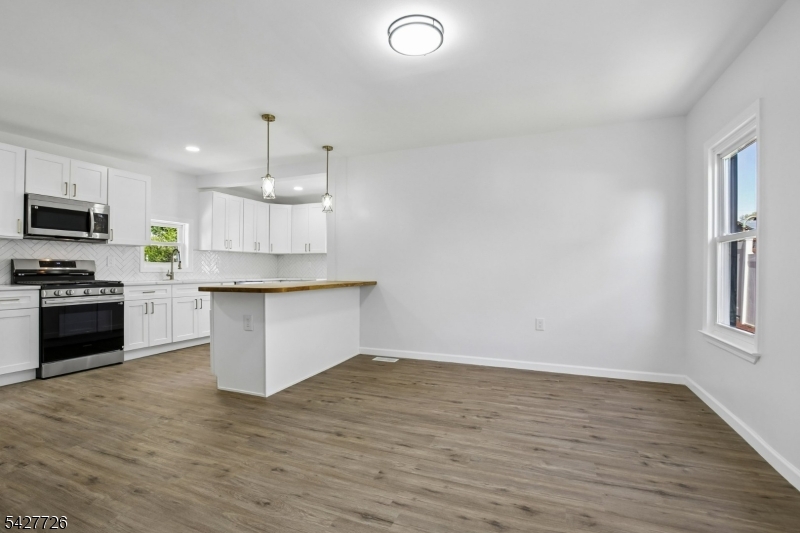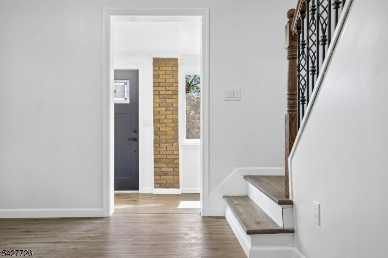 Welcome to 87 Edison Avenue, a beautifully renovated home nestled in the highly desirable and sought-after township of Nutley. This well-designed 3-bedroom home offers impressive curb appeal, a stylish exterior, and a welcoming first impression from the moment you arrive. Set above the street with a defined front approach, this home features wide concrete steps, sleek black railings, exterior lighting, fresh landscaping, and a modern black-and-white color palette. The exterior showcases a tasteful blend of light siding & dark brick accents, creating a crisp and contemporary presentation while maintaining classic neighborhood charm. . As you walk in, your eyes will be immediately captivated by the new, modern flooring throughout. The front door opens to a well-placed enclosed porch, providing extra room for a sitting area or storage. Once you walk past the enclosed porch, you are greeted by a large living room complemented by a well-designed accent wall. Continuing through the home, you will find a modern kitchen featuring white cabinetry, stainless steel appliances, and an open layout that flows into the dining room. Upstairs, where the 3 bedrooms are perfectly situated, you are welcomed by beautiful iron railings and 3 spacious bedrooms. This home does not stop impressing there. Downstairs, the finished basement offers additional finished space with endless possibilities. This home also features new HVAC system and a well situated laundry room.