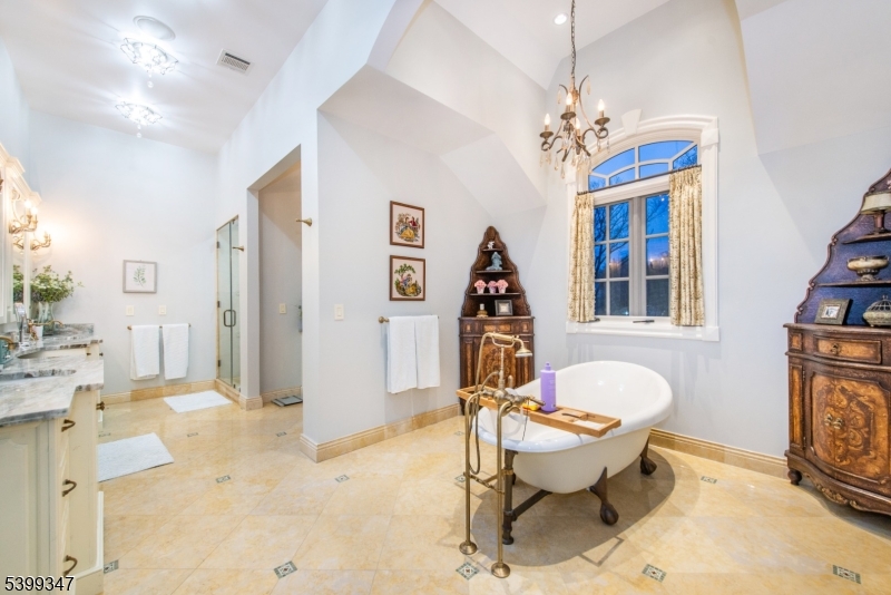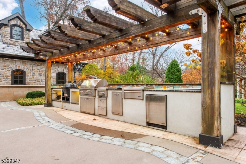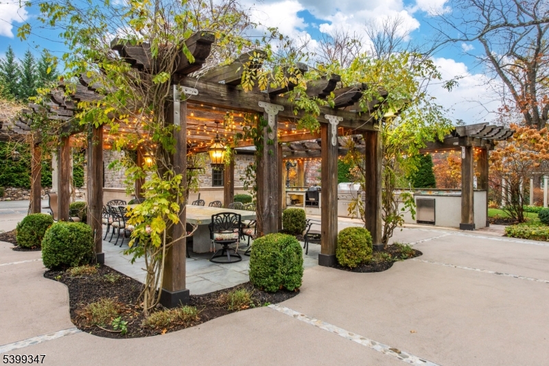Welcome to pure perfection in the prestigious town of Essex Fells. Drive through private gates and up an impressive winding driveway to this breathtaking residence set on an expansive wooded lot w/ sweeping mountain views. Step inside to a remarkable foyer w/ a grand wrap-around staircase. To the left, a sophisticated living room awaits and to the right, a richly appointed office. The state-of-the art kitchen flows seamlessly into the dining room-with top-of-the-line appliances, custom carpentry, and fireplace. A 1st floor laundry room, easy backyard access, and stairs leading to both the 2nd floor and basement complete the main level. Throughout the home, every bathroom has been designed w/ great detail and luxury in mind. Upstairs, you’ll find 3 spacious bedrooms, each w/ its own full en-suite bath and walk-in closet w/ custom shelving. 1 bedroom includes doors leading to a private balcony. An additional laundry room is provided on this floor for easy functionality. The primary suite is a retreat in itself, featuring a private balcony, a large walk-in closet fit for royalty, and a spa-like primary bath complete w/ soaking tub, dual vanities, bidet and a shower, crafted to deliver true resort-style indulgence. The fully finished basement redefines luxury w/ a complete family room, home gym, pool and poker rooms, full bar, and wine cellar. Step outside to an outdoor oasis. Stroll through a charming trellis walkway leading to a 3-car garage, a fully equipped kitchen, brick